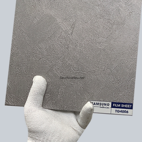 Mã số: TG4006 Thương hiệu film: SAMSUNG SOIF Xuất xứ : Hàn quốc (KOREA) Quy cách khổ film (Ngang x Dài x Dày): 1,22m x 50m x 0.42mm Các lớp cấu tạo film:Kiểu vân: Film nội thất vân giả kim loại (Metal), màu Xám Ứng dụng của film dán nội thất: Film dán tủ bếp, Film dán tủ quần áo… Film dán tường,Film dán trần, Film dán vách giả gỗ trang trí… Film dán thang máy, Film dán cửa gỗ, Film dán cửa nhựa, Film dán cửa chống cháy… Kho hàng: HCM & HN