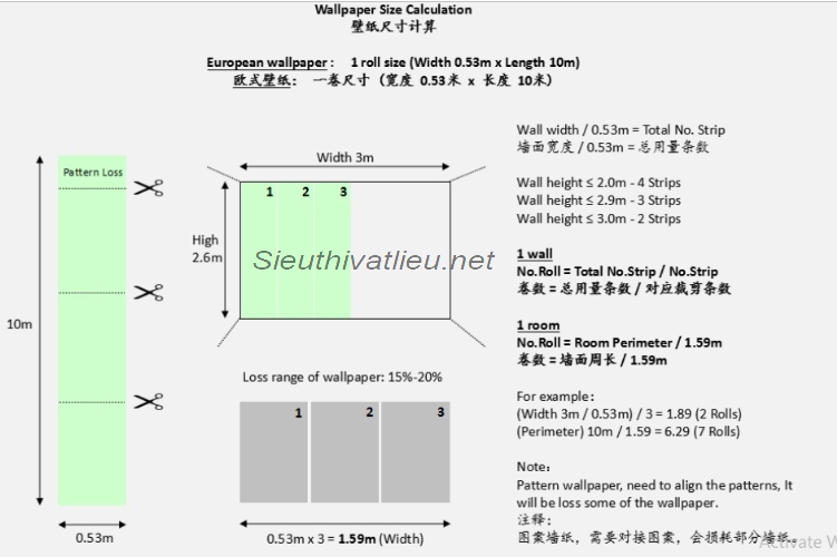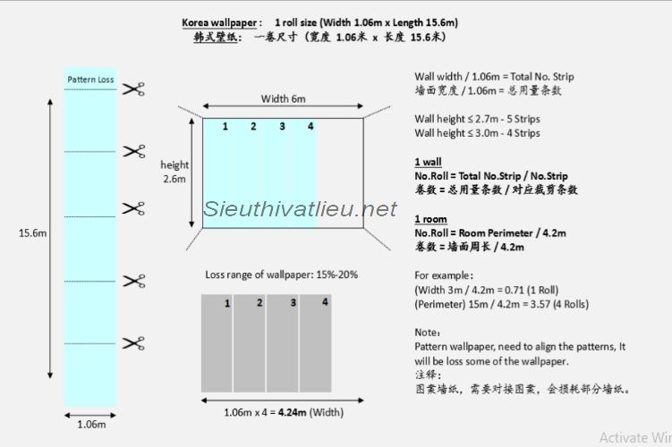 Cách tính giấy dán tường khổ 1.06 x 15.6m