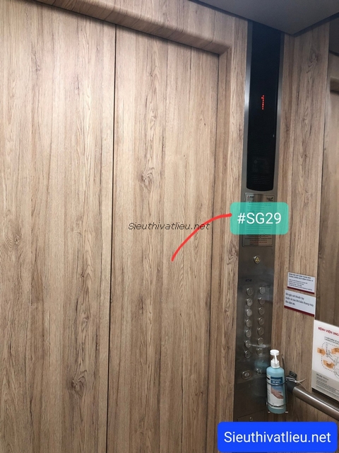 (Film nội thất vân gỗ Samsung SG169 dán thang máy chung cư tại HCM VN)