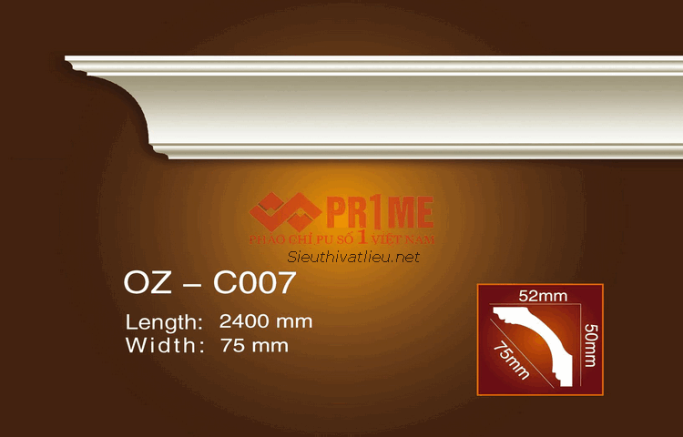 Tên sản phẩm: OZ - C007 Xuất xứ : Trung Quốc Quy cách chung: Phào chỉ cổ trần bản rộng 76 mm Thanh phào dài 2400mm Kiểu hoa văn: Phào cổ trần trơn, phào cổ trần không có hoa văn Màu sắc: Phào chỉ PU cồ trần trắng trơn (Có thể sơn thành các màu sắc theo ý muốn) Ứng dụng: Phào chỉ cổ trần PU ốp góc trần trang trí. Phào chỉ cổ trần PU ốp cổ trần thạch cao. Phào chỉ cổ trần PU ốp mặt dựng trần thạch cao, ốp khe hắt đèn led. Phào chỉ cổ trần PU ốp trần nhà biệt thự, khách sạn, nhà phố, nhà chung cư, quán karaoke, nhà hàng tiệc cưới
