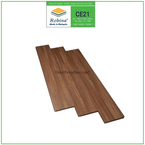 Mã số: Robina CE21 Xuất xứ sàn gỗ: Malaysia Quy cách (Dài x Rộng x Dày): 1283 x 193 x 8 mm Đóng gói: 8 Thanh / 1.98m2 / Hộp Độ cứng: AC4 Bề mặt: Bề mặt mờ Kiểu vân gỗ: Vân gỗ sồi (Oak), Màu Nâu Kho hàng: HCM
