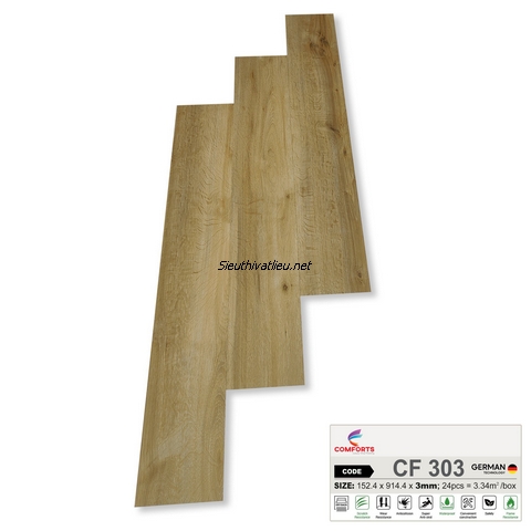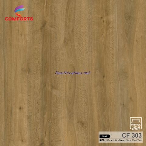 Mã số: CF303 Thương hiệu: Comforts Xuất xứ: Trung Quốc Cách thi công sàn nhựa: Dán keo chuyên dụng Quy cách tấm sàn nhựa vinyl (Dài x Rộng ): 914.4 x 152.4 x 3 mm Bề mặt: Sơn UV Đóng gói: 24 Tấm / 3.34 m2 / Hộp Kiểu vân: Vân gỗ màu Nâu Kho hàng: HCM