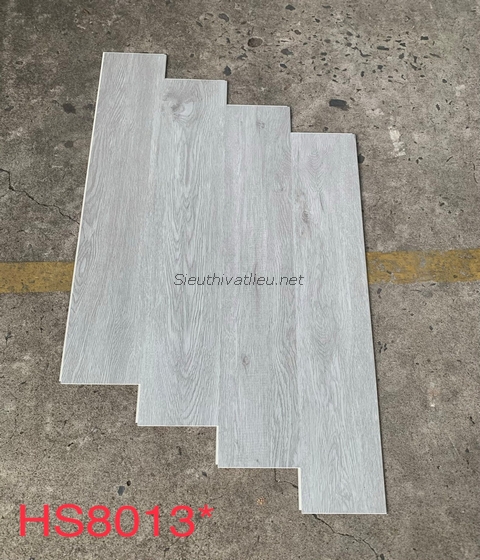 Mã số: HS8013 Độ dày: 4 mm Quy cách tấm Vinyl (Dài x Rộng ): 914 x 153 mm Cách thi công: Hèm khóa như sàn gỗ công nghiệp Đóng gói: 18 Tấm / 2.5 m2 / Hộp Kiểu vân: Vân gỗ màu xám