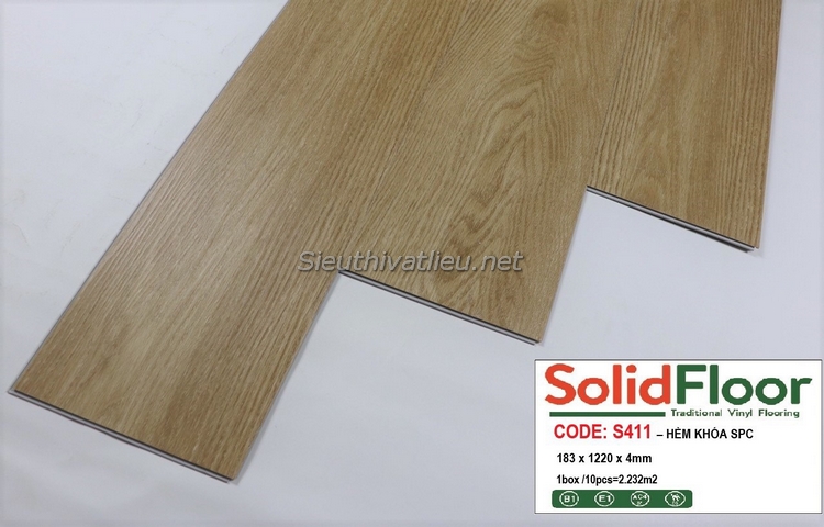 Mã số: Solid Floor S411 Xuất xứ: Trung Quốc Độ dày tấm sàn nhựa: 4 mm Độ dày lớp layer bảo vệ: 0.3 mm Quy cách tấm sàn nhựa vinyl (Dài x Rộng ): 1220 x 183 x 4 mm Cách thi công: Hèm khóa giống sàn gỗ Bề mặt: Sơn UV Đóng gói: 10 Tấm / 2.232 m2 / Hộp Kiểu vân: Sàn nhựa vân gỗ