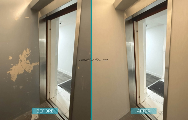 Khắc phục vết trầy xước trong buồng thang máy bằng film nội thất vân vải Samsung MG452