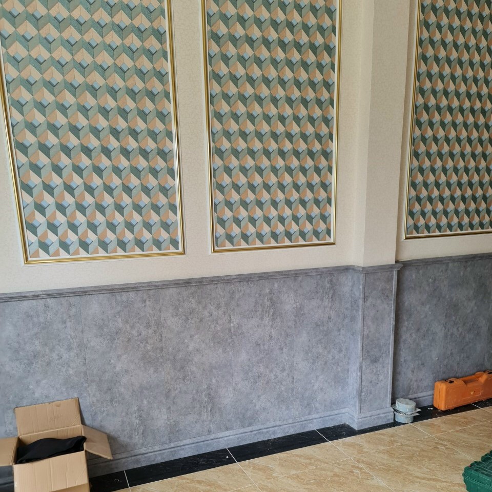 (Ốp tường giả đá bằng tấm nhựa Nano vân đá bê tông màu xám ốp lamri)